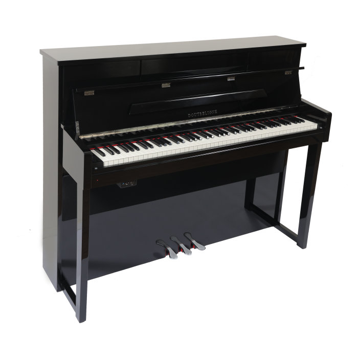 The Doutreligne MHP-5000 features a classic cabinet with a black high-gloss finish, giving it the appearance of a real acoustic piano. The elegant design combines the charm of a traditional piano with the modern benefits of digital functionality. The sturdy cabinet ensures excellent stability, while the user-friendly controls via the LCD screen make navigating the functions easier. A perfect blend of aesthetics and functionality for any space.