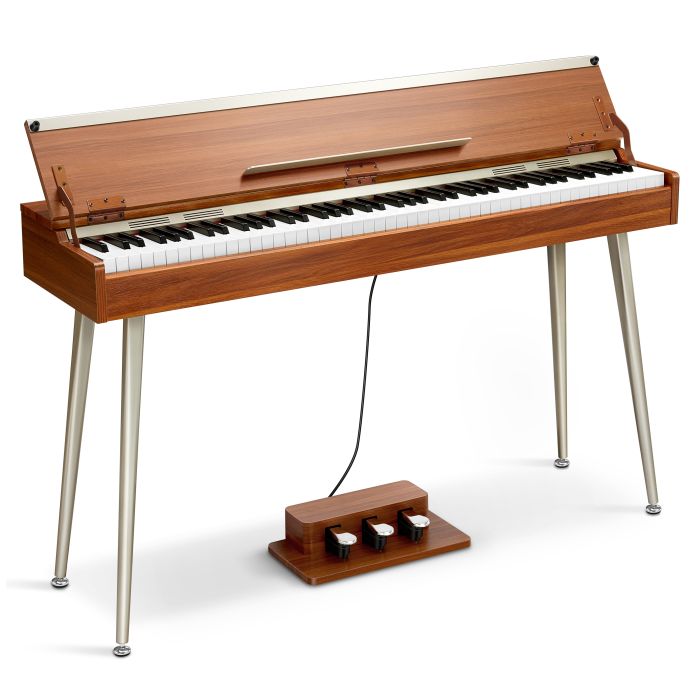 Le Donner DWP-10 associe un design vintage élégant avec une finition en noyer et un meuble compact qui s’intègre parfaitement à tout intérieur. Son clavier lesté de 88 touches offre une expérience de jeu authentique proche d’un piano acoustique. Grâce à l’amplification 20W intégrée, vous profitez d’un son riche et puissant qui remplit facilement la pièce. Un choix idéal pour ceux qui recherchent élégance, compacité et plaisir pianistique.