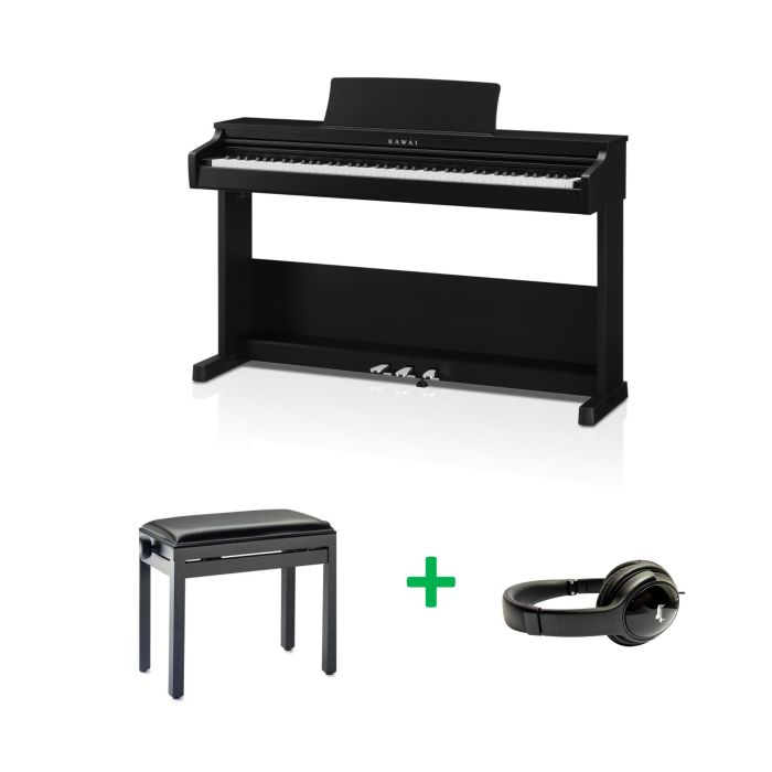Profitez d’un avantage supplémentaire avec ce pack parfaitement adapté à votre piano ! Vous recevez un élégant banc de piano Maene en skai noir satiné pour une assise confortable ainsi que le casque Maene ProSound, qui vous permet de vous exercer en toute tranquillité tout en profitant d’un son clair. Jouez dès le premier jour dans un confort optimal.