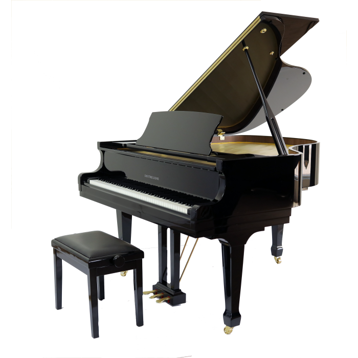 De Doutreligne MGP-9000 is een digitale vleugelpiano die met zijn imposante meubel en verfijnde afwerking moeiteloos de grandeur van een echte concertvleugel benadert. Het grote, robuuste design maakt visueel nauwelijks onderscheid met een akoestische vleugel – een waar meesterwerk dat de aandacht trekt in elke ruimte. Met zijn elegante contouren, de rijk glanzende afwerking en subtiele gouden details op de metalen onderdelen en het Doutreligne-logo, is deze piano niet alleen een instrument, maar ook een artistiek statement.